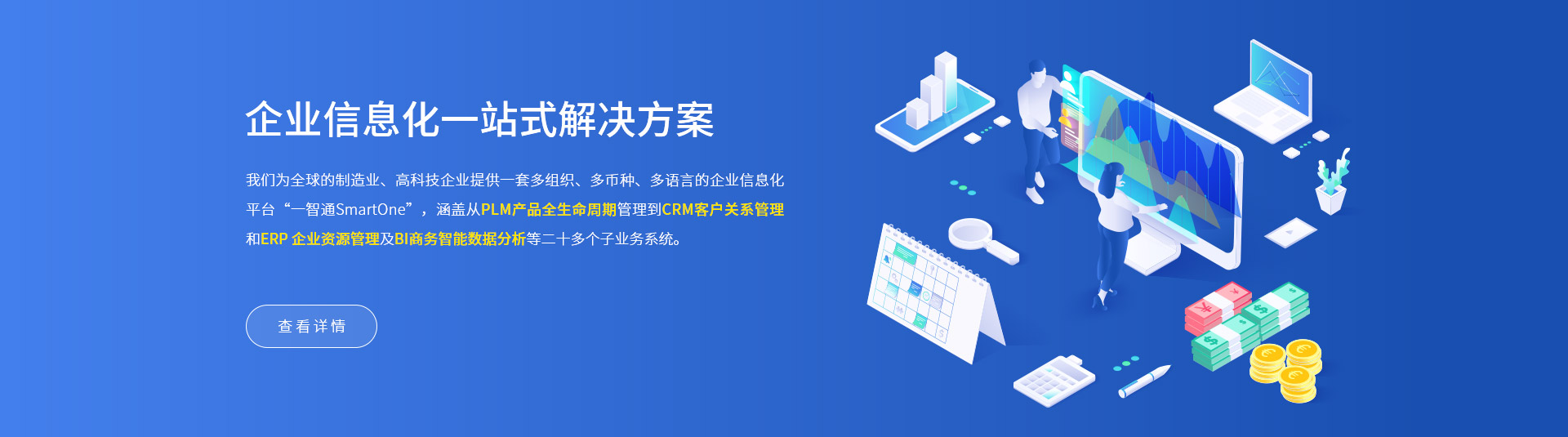 一智通(SmartOne)企業信息化一體化信息管理方案,涵蓋從 PLM 產品全生命周期管理 到CRM客戶關系管理和ERP企業資源管理及BI商務智能數據分析等二十多個子業務系統。